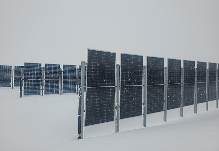 Solar panels set up vertically in Sweden by Sunna Group use an arrangement that is also expected to be useful for generating power at the South Pole. Photo by Silvana Ovaitt, NREL